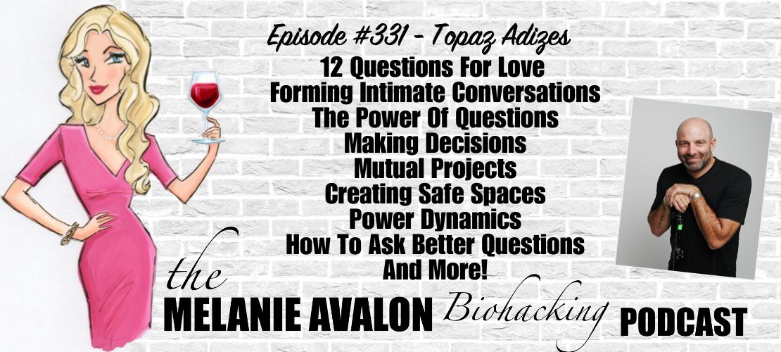 So friends, are you ready to join me? Let's do this. Welcome back to the Melanie Avalon biohacking podcast. Friends, I absolutely loved today's episode with Topaz Adidas. We are going to talk all about how focusing on questions can potentially change your life for the better, of course. Oftentimes we just think about answers, but what about the questions? You're going to learn how to actually create questions so that you can better find answers in life, experience the things you want to experience, and increase intimacy with those special to you. I cannot recommend his book, 12 Questions for Love Enough, and you'll get a taste of it in today's episode. We also talk about things like the role of creating safe spaces for conversations and how to do that, how to better make decisions, power dynamics when it comes to conversations, the role of mutual projects, and so much more.